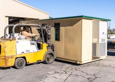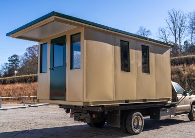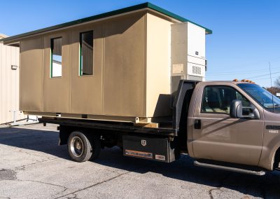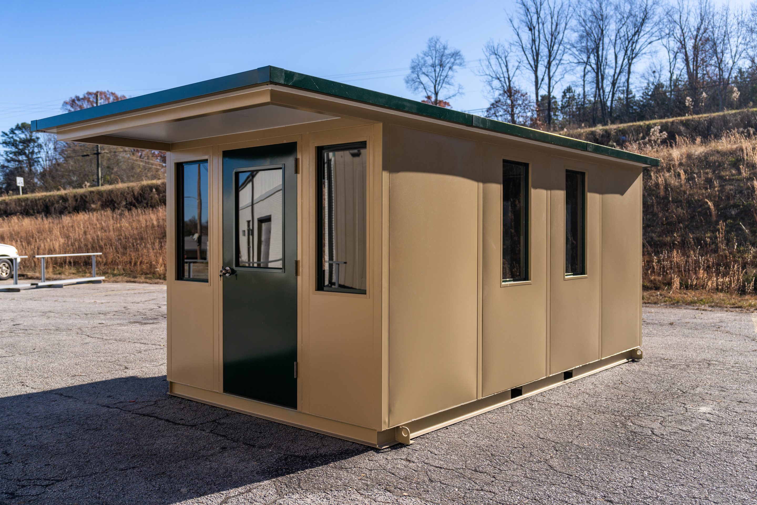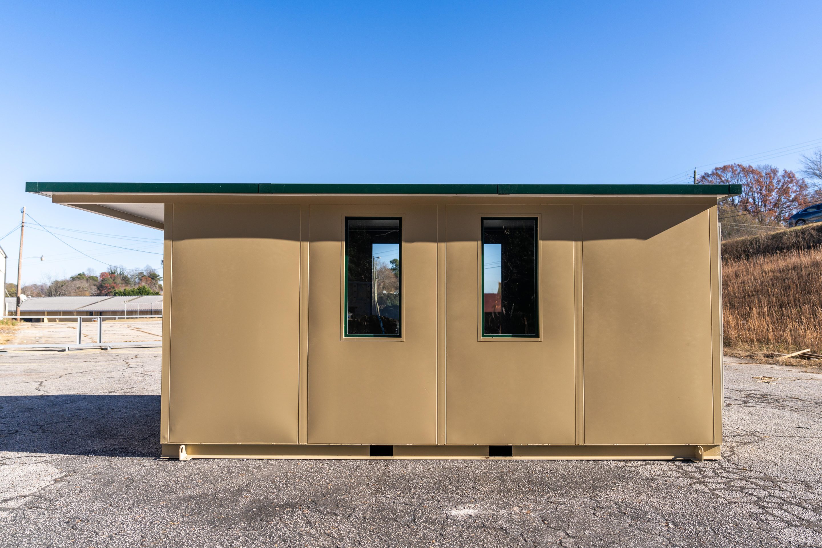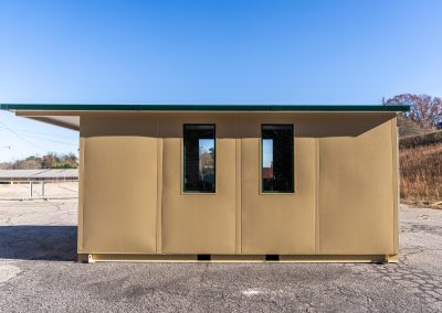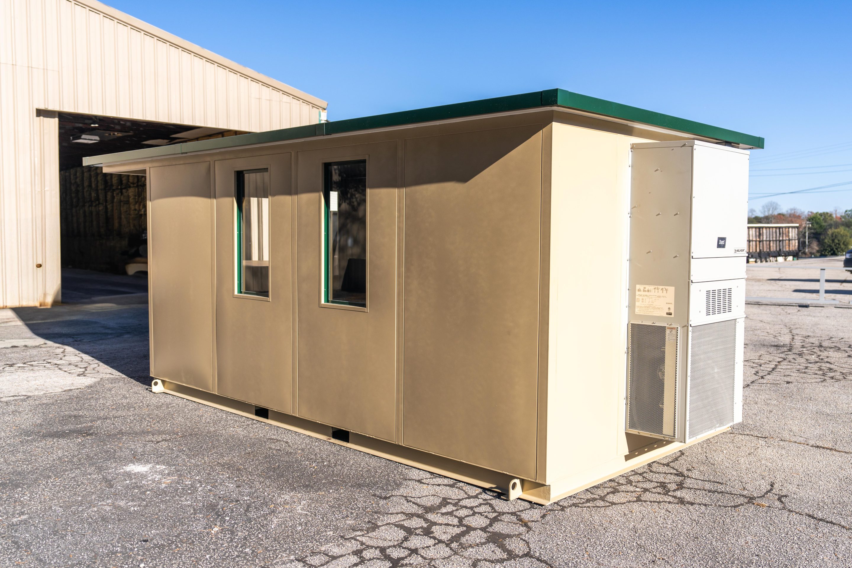 The model is constructed with A-60 Galvannealed Steel for exceptional rust protection, with all components thoroughly primed prior to assembly. Each panel is insulated, and the structure is coated with durable industrial enamel. Complete wiring is installed, and heating and cooling systems are incorporated for comfort. The glass used is tempered for added safety, and the roof is insulated to enhance energy efficiency.