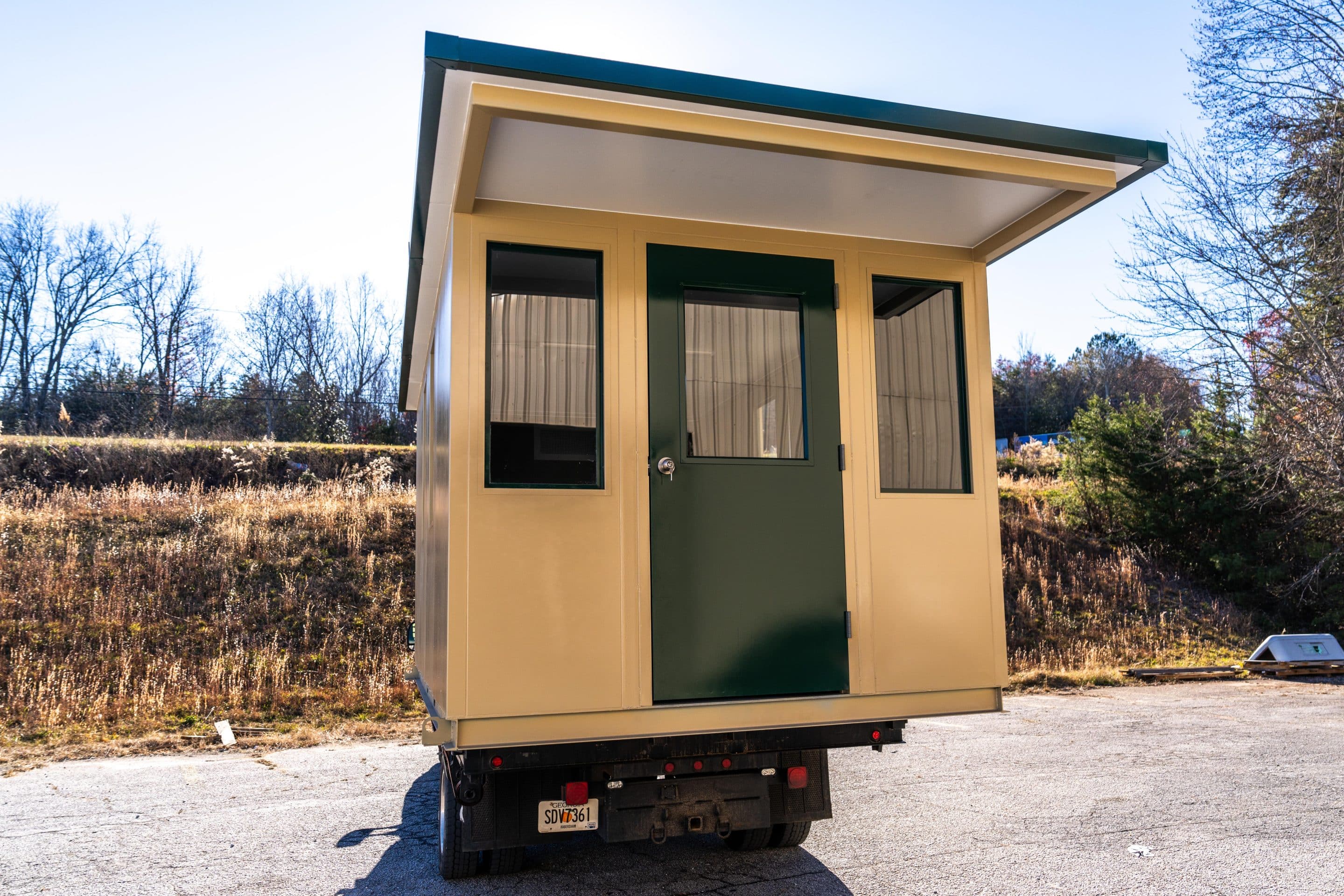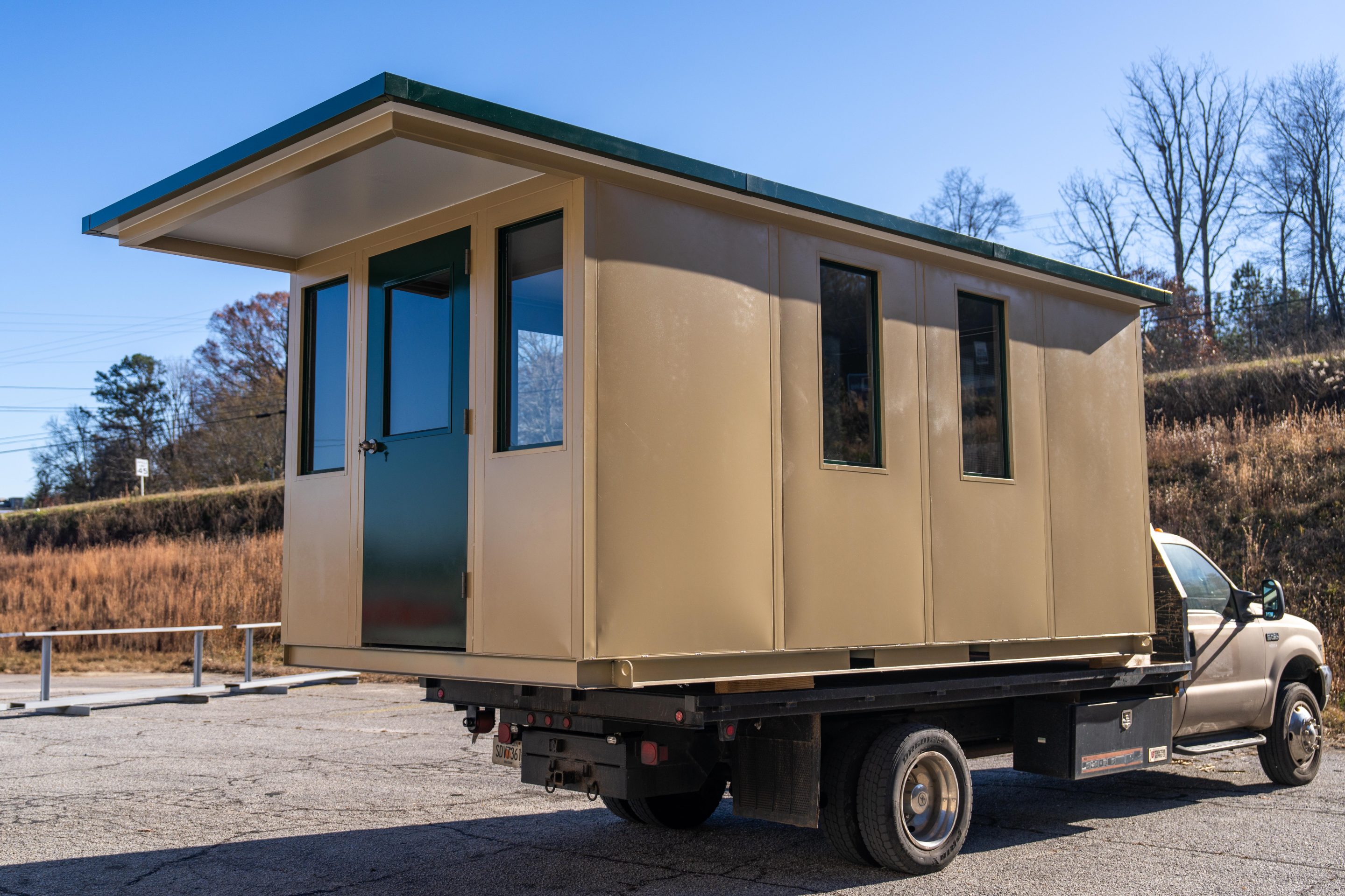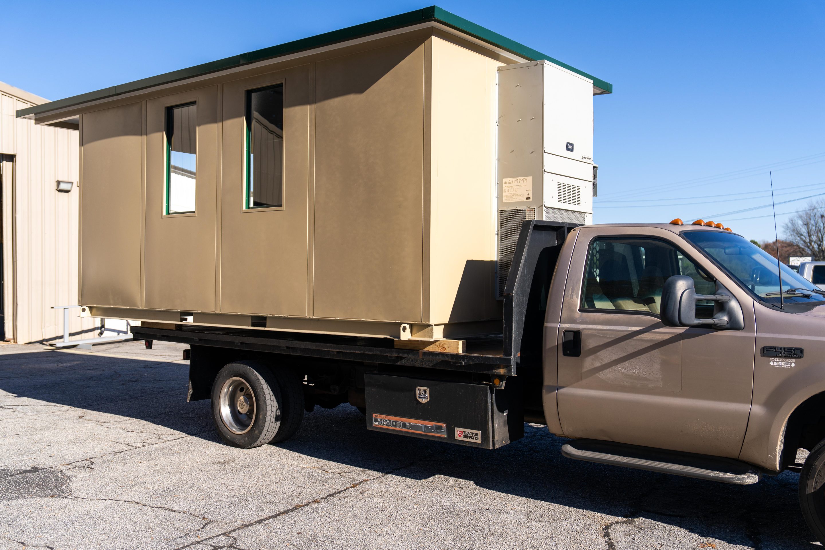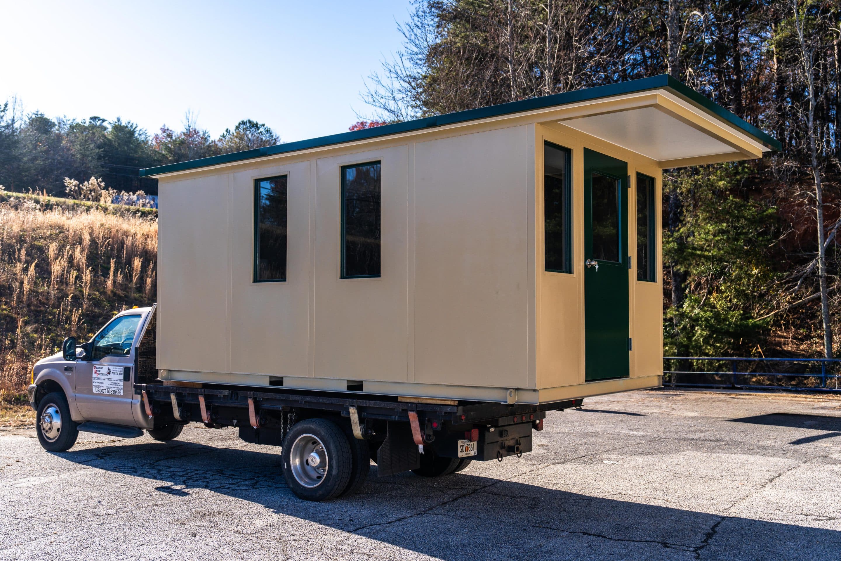 The model is constructed with A-60 Galvannealed Steel for exceptional rust protection, with all components thoroughly primed prior to assembly. Each panel is insulated, and the structure is coated with durable industrial enamel. Complete wiring is installed, and heating and cooling systems are incorporated for comfort. The glass used is tempered for added safety, and the roof is insulated to enhance energy efficiency.